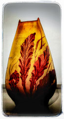 Vase aus der Daum-Verrerie de Nancy mit einer geätzten und emaillierten Landschafts-darstellung.