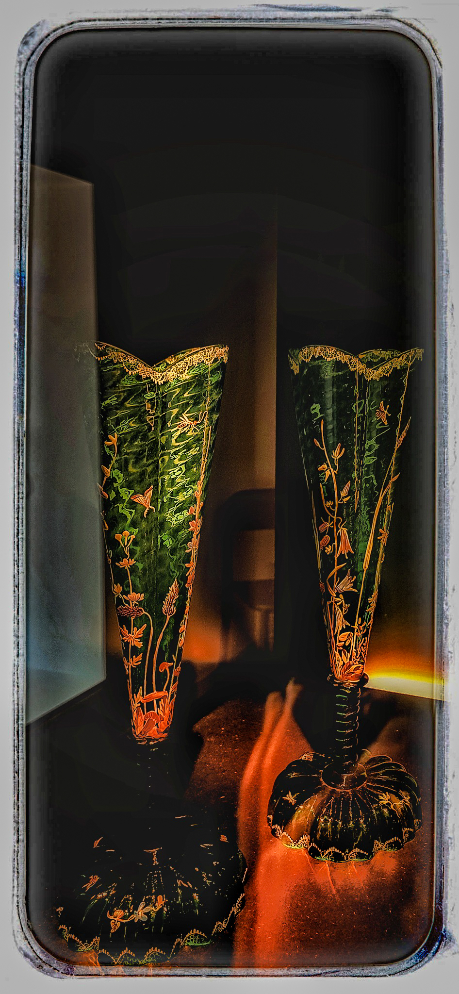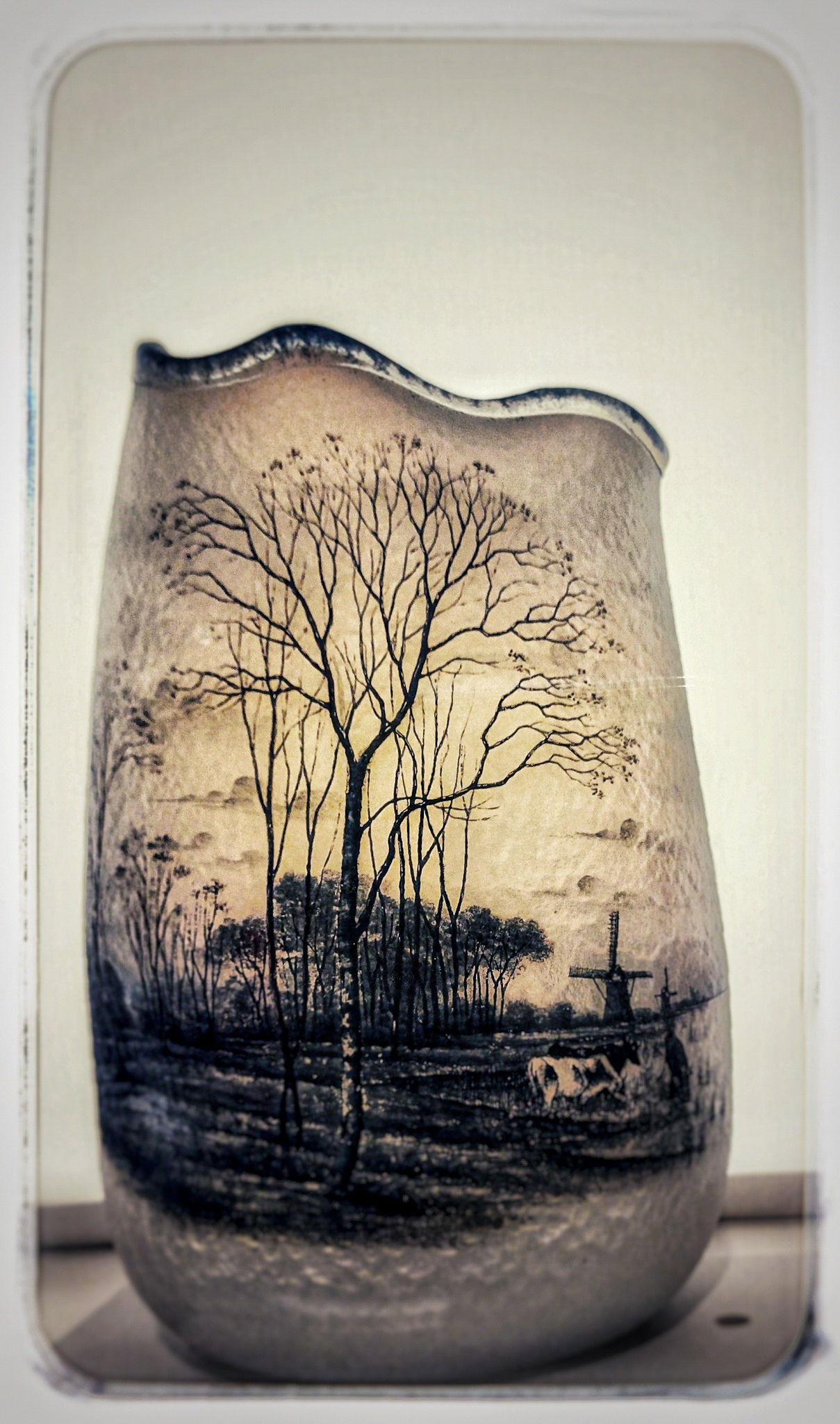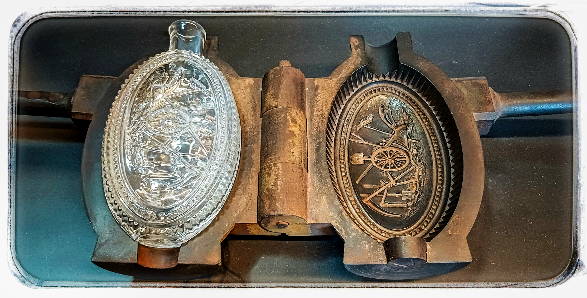 Rechts das Foto der originalen „Vase mit dem Karpfen“ von Emile Gallé (1878), welche als Inspiration diente für die „Vase ohne den Karpfen“, die von den Glasmachern des CIAVs während unsererVorführung hergestellt wurde.