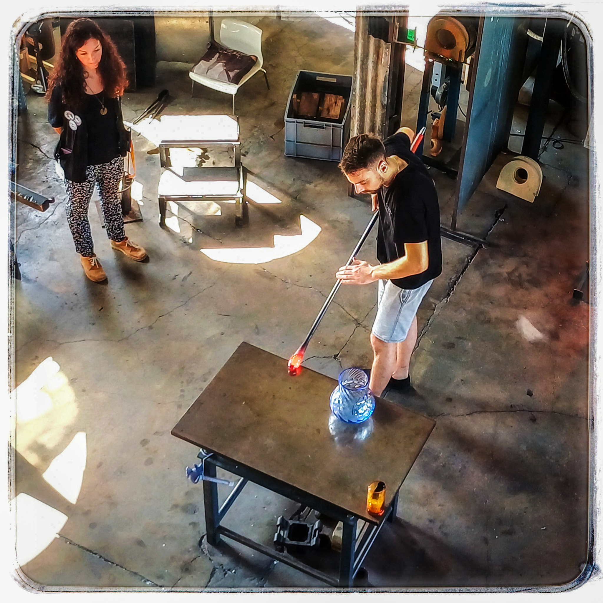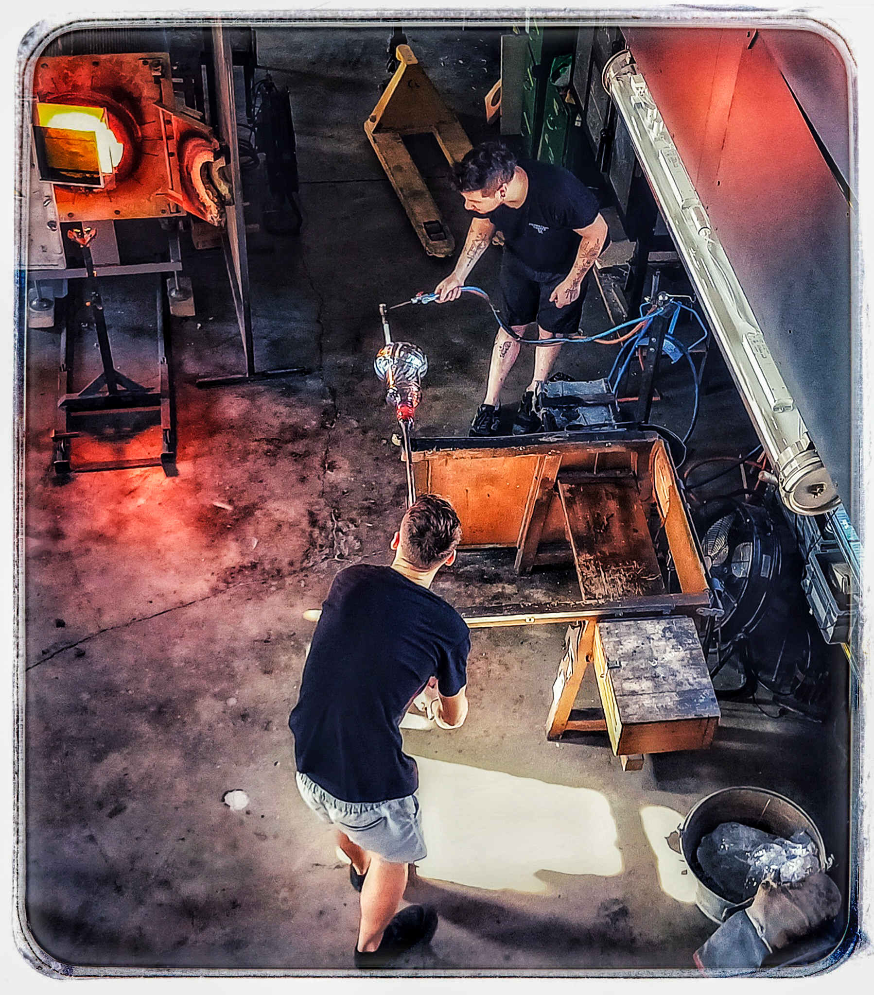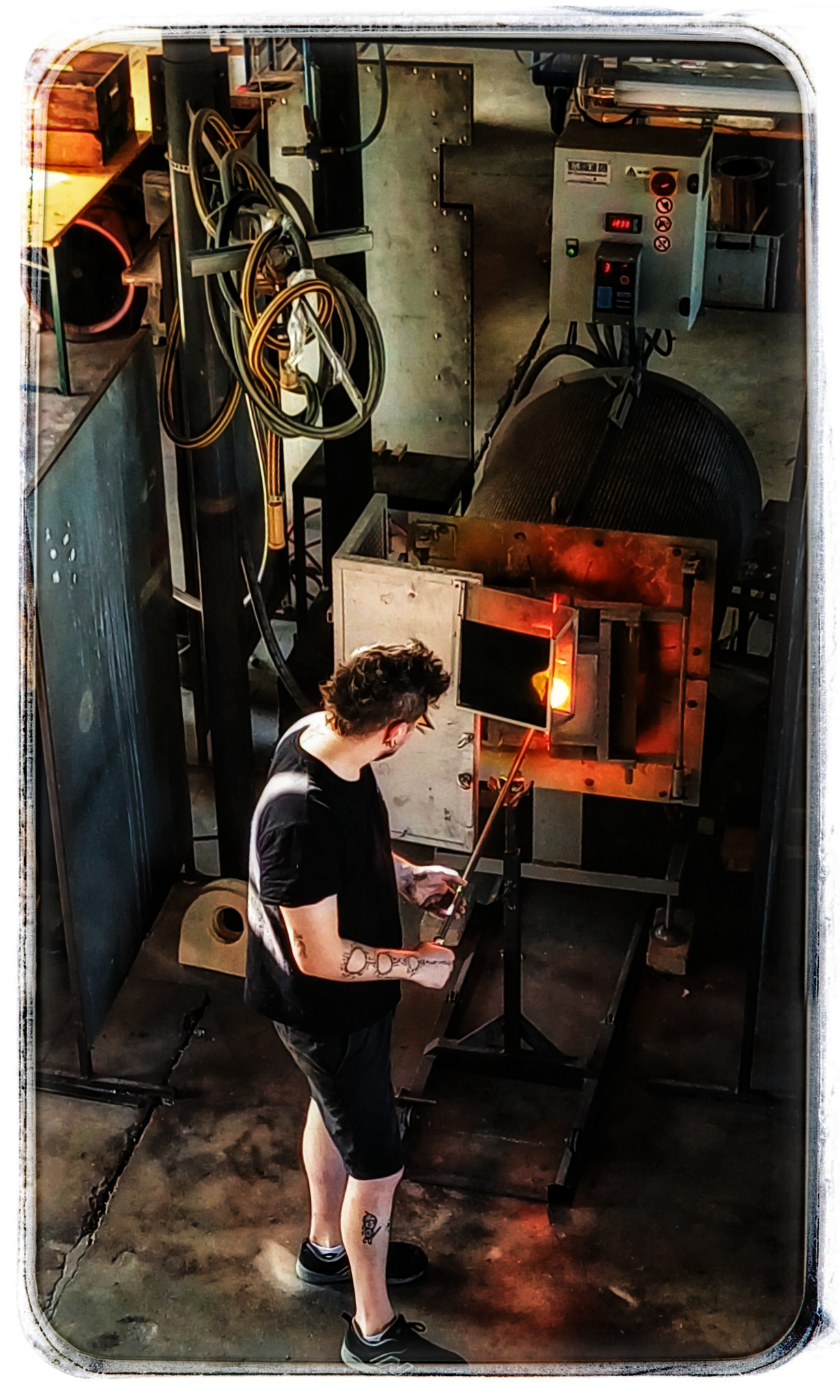 Während unserer Führung konnten wir eindrucksvoll die Entstehung einer Vase beobachten – ein faszinierender Prozess, der Geschick, Präzision und Kreativität vereint. Wir Besucher erhielten einen faszinierenden Einblick in die Kunst des Glasblasens, wo flüssiges Glas durch geschickte Hände und heißen Atem in filigrane Formen verwandelt wird.